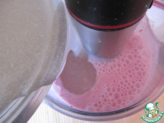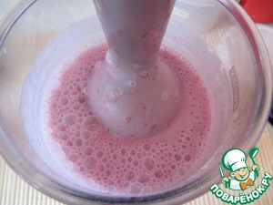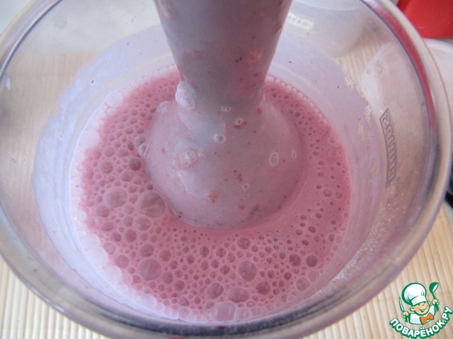 Для суфле. Соединить в чаше йогурт (комнатной температуры), банан, ягоды размороженные, мед,