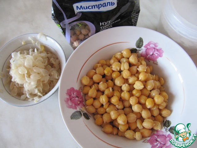 Затем очистить его от кожицы, нут немного обсушить, чтобы не был сильно влажным, но и не сухой, а то потом основа сильно крошиться будет.