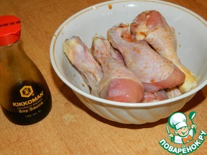 Замаринуем курочку заранее за несколько часов в соевом соусе Киккоман.