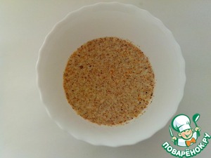 В миску насыпать панировочные сухари и залить молоком. Дать постоять 10-15 минут, пока они не впитают молоко.