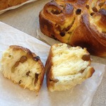 Из каждой части раскатать пласт, посыпать его 2 ст. л. коричневого сахара и 1/2 частью изюма. Свернуть пласт в плотный рулет и нарезать на сегменты по 3-4 см толщиной.