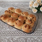 Такие плюшечки порадуют вас и в праздник, и в будний день. Очень вкусная и нежная сдоба. Начинка может быть любой, я сделала с изюмом, т. к. его люблю.