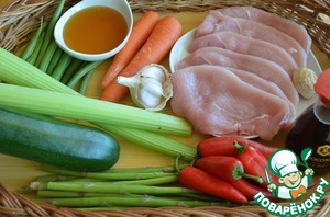 • 2. Овощи нарезать тонкой соломкой, чеснок и имбирь очистить и мелко порубить.