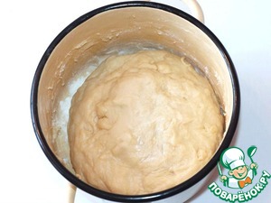 Замесить тесто, накрыть полотенцем и поставить подходить в теплое место на 30 мин. для подъема в два раза.