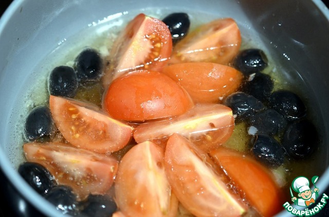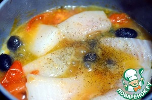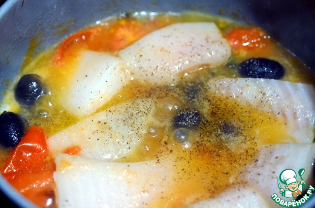 Рецепт «Палтус с томатами, маслинами и орегано»: