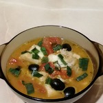 Палтус с томатами, маслинами и орегано