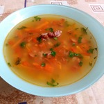 Только я делала без копченостей, была говядина кубиками, обжарила и в бульон. И галушки забыла