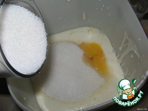 В растёртые яйца со сметаной и сахаром добавляем соду погашенную уксусом. Можно разрыхлитель.