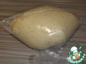 Тесто мягкое, эластичное, немного липкое. Перекладываем тест в пакет и убираем в холодильник на 1,5 часа