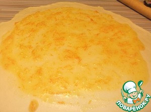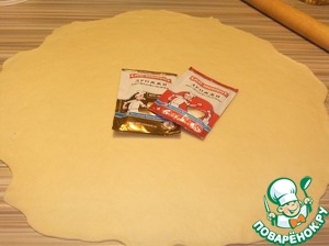 Раскатываем тесто в пласт. Уверена у Вас получится ровнее (я в раскатывании не сильна)