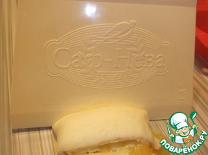 Сворачиваем в рулет. Режем на кусочки толщиной примерно 2см.