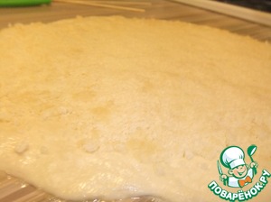 Накрываем вторым (меньшим) пластом теста и защипываем.