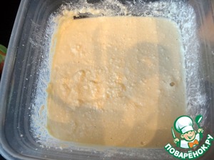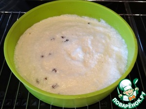 Аккуратно выливаем полученную массу в форму, разравниваем ложкой. У меня силиконовая форма диаметром 25 см, маслом я её не смазываю.