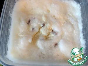 Ставим прогреваться духовку на 180 градусов. Если используете изюм, предварительно залить его кипятком минут на 5. Подготовим две чаши. В первой взобьём блендером до однородной массы творог, крахмал, желтки, сметану, сахар. Сливаем с изюма воду, добавляем в творожную массу, перемешиваем.