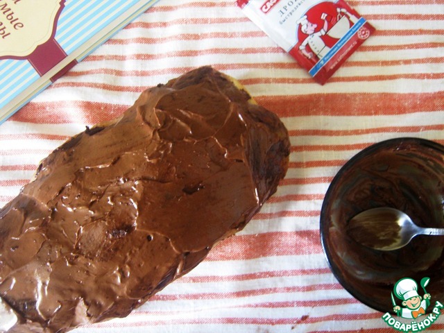 Во время выпекания нагреть для ганаша сливки (но не кипятить) и растопить в них шоколад. Накрыть ганаш плёнкой и отправить в холодильник. Через полчаса-час смесь загустеет и можно будет украсить хлеб сверху.