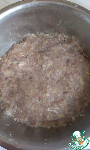 Далее перекручиваем размоченный в воде батон. Солим, перчим.