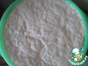 В теплом подслащенном молоке растворяем дрожжи, добавляем муку и замешиваем опару. Даем ей побродить в теплом месте, от 40 мин. до часа в зависимости от качества выбранных дрожжей.