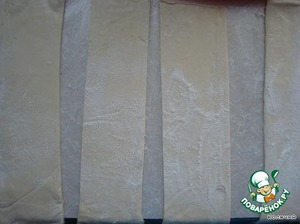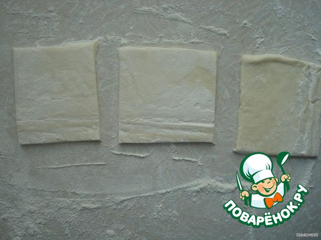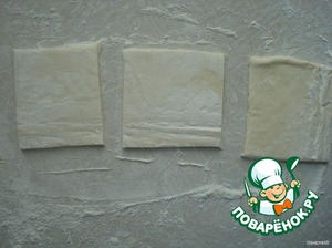 Потом на квадратики, поверхность я посыпала мукой, чтобы оно не прилипало.