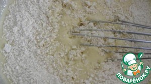 Масло протереть с сахаром. Затем добавить яйца по одному, непрерывно смешивая.