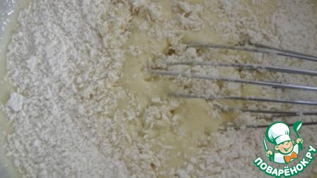 В отдельной миске смешайте кокосовую стружку и муку. Добавить к молочной смеси.