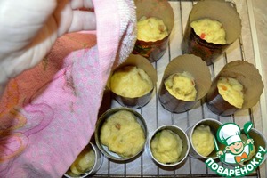 Тем временем смазать жестяные формочки растопленным маргарином. Если используете бумажные формочки, то смазывать не надо.
