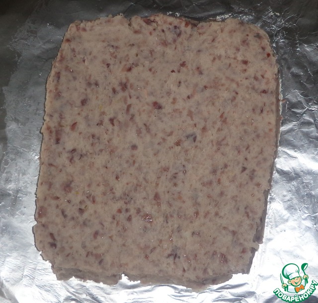 Фасолевую массу выкладываем на фольгу и делаем из нее пласт.