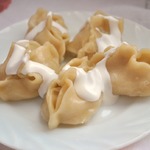 Только я картофельные защипываю "кувшинчиком" - сверху оставляю отверстие, через которое в готовые манты кладу кусочек сливочного масла. А в сырую картофельных начинку добавляю чуть-чуть растительного, а не сливночного масла - так картошка не даст раньше