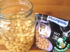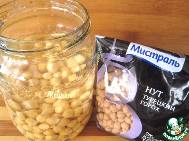 Нут заливаем холодной водой в пропорции 1:4 и оставляем на ночь или на 12 часов