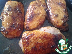 Кусочки утки обжарить до золотистого цвета на растительном масле.