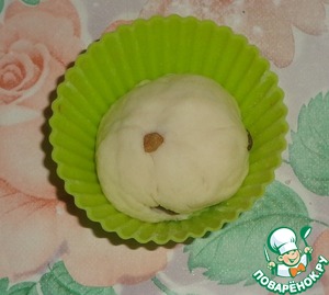Стол присыпаем мукой и выкладываем из миски тесто. Немного помесить его, чтобы образовался шар. Разделить шар на маленькие шарики, чтобы поместились в силиконовые формочки для кексов.