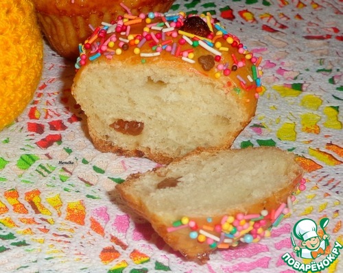 Предлагаю вашему вниманию пасхальные кексики с изюмом и медовой глазурью с кондитерской посыпкой.