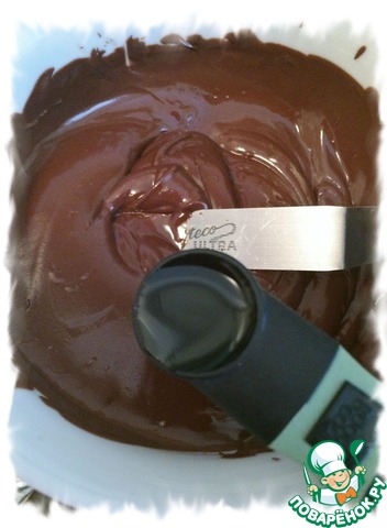Шоколад растопить на водяной бане или в микроволновке, добавить 1 ч. л. растительного масла без запаха и привкуса, хорошо всё перемешать. Масло добавляется для того что бы потом, когда шоколад застынет он при резке не крошился и не ломался.