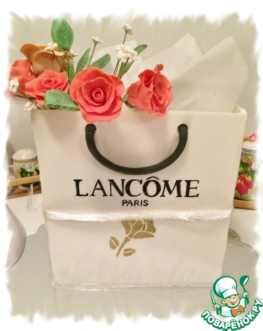 Печенье выложить слоями, перекладывая каждый пергаментной бумагой. Из белой мастики раскатать длинный тонкий жгут и выложить его по периметру печенья. Смазать его сиропом и вставить в мастику сначала боковинки а потом переднюю и заднюю панели. Если в местах стыка панелей будут щели, то замазать их мастикой.