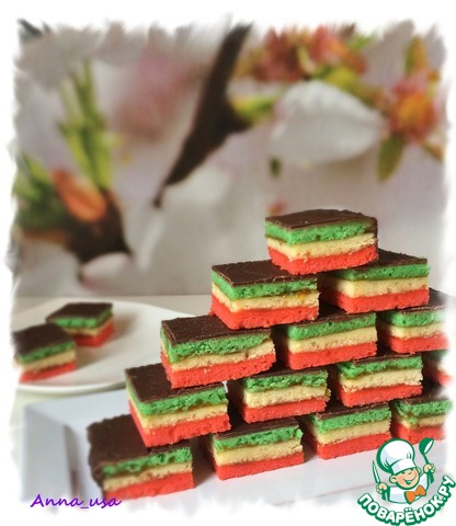Итальянское традиционное трёхцветное печенье я оформила в виде торта для любимой подруги. Этот рецепт для меня из серии - пока не сделаю не успокоюсь. Коржи получаются бисквитно-песочными, ароматный миндальный вкус, нежная абрикосовая кислинка и тооооонкий слой шоколада, вобщем что то невероятно вкусное!