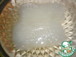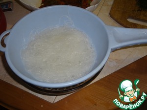 Как только чайник вскипел, заливаем нашу фунчозу на 5 минут кипятком.