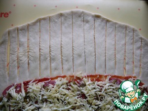 Острым ножом разрезать оставшееся тесто на полосы примерно 2 см