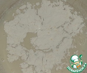 Добавляем половину муки, затем эссенцию для придания аромата выпечки, а потом всыпаем оставшуюся муку. Замешиваем тесто и оставляем на 2 часа в теплом месте.