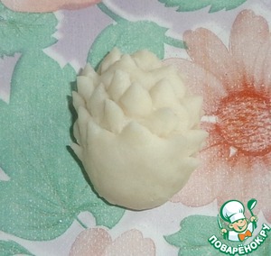Затем с помощью ножниц делаем надрезы, чтобы получилась шишечка.