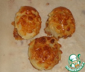Выкладываем шишечки на противень, смазываем желтком и выпекаем 30-45 минут при температуре 200 градусов.