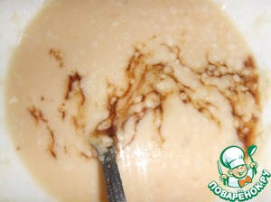 После того как мясо промариновалось, сливаем соус в яичную смесь. -