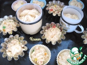 Подготовим формочки-смажем растительным маслом или застелим пекарской бумагой. Разложим тесто по формочкам, накроем и оставим на 20-ть минут для окончательной расстойки. Духовку разогреваем t 180 градусов.