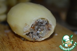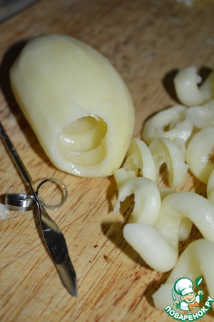 Картофель моем, чистим и вынимаем из него середину. Я сделала это винтовым ножом.