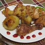 Вот так банальная курица с картошкой превратилась в ужин в русско-японском стиле. А идея с шашлычками оказалась просто великолепной - они чудо.