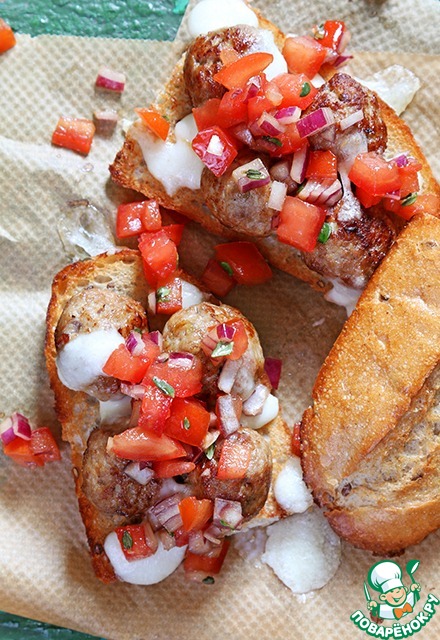 Рецепт «Сэндвичи с фрикадельками, моцареллой и томатной сальсой»: