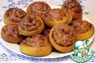 P/S. Если вы хотите чтобы на верху булочки был четкий рисунок, увеличивайте топинг в два раза. Вот тогда удобно "наносить" острым ножичком любые "рисунки" на топинге. Я готовила впервые эти булочки и в след. раз так и сделаю. И не забывайте наносить на булочку перед топингом взбитый белок.