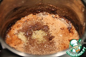 Сливки подогреть, добавить шоколад и сахар, дать раствориться, перемешать до однородного состояния |