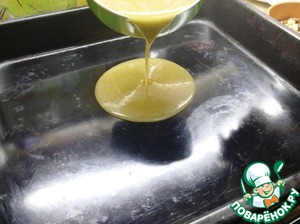 Распределите карамель между двумя формами для запекания, примерно 20х30 см или один большой противень с бортами. У меня 35х40 см.
