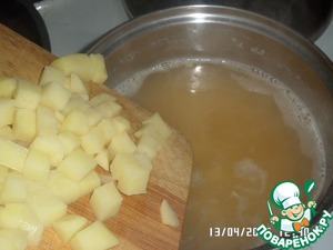 • Добавляем к чечевице нарезанный картофель. Варим 7-10 минут.