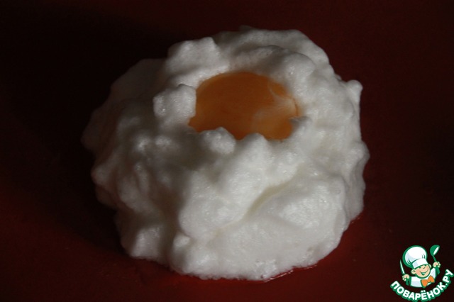 Предлагаю любителям покушать на завтрак яиц, разнообразить свой рацион таким простым, но в то же время необычным блюдом:) Нежная, похожая на суфле структура прекрасно сочетается с любимым соусом, гренками или любой другой закуской.