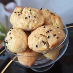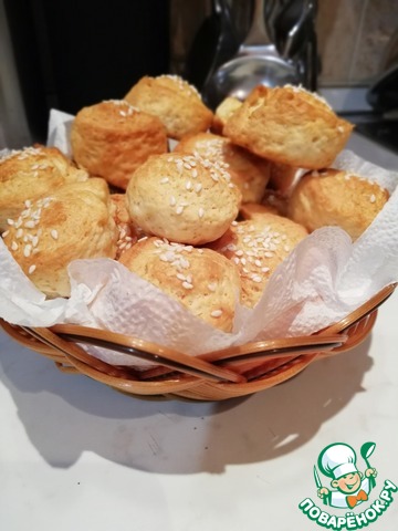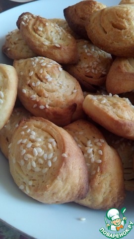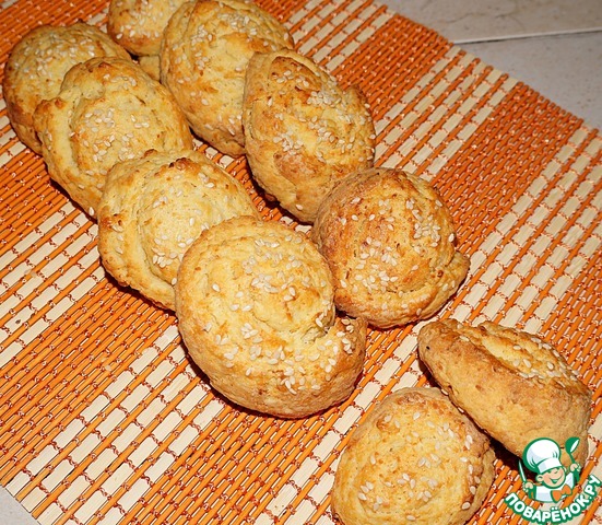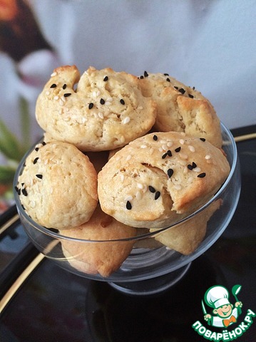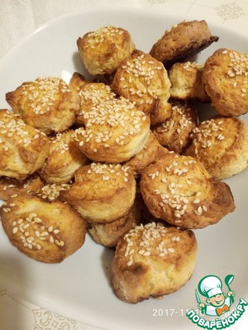 Выложить на смазанный противень. Печенье смазать молоком и посыпать кунжутом.